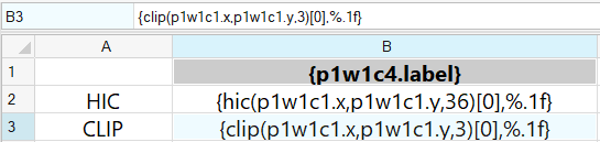 セルをクリックすると、テキストまたはTemplex式を編集できる編集バーにセルとそのコンテンツが表示されます。編集ツールをもう一度クリックすると、編集バーが非表示になります。図 2. セルB3が選択され、セルがハイライトされ、内容がEditバーに表示される。