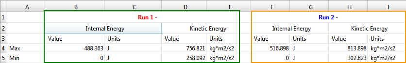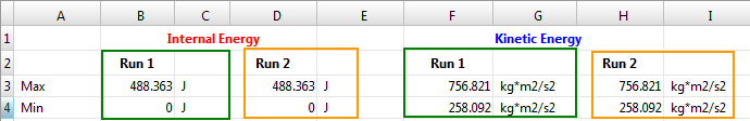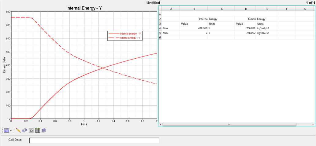 たとえば、以下のセッションでは、左側のグラフに表示された内部エネルギーと運動エネルギーのデータが、右側のTableViewに表示されています。