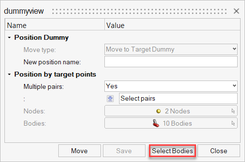 このボディは、ダミーの動きを駆動する親ボディになります。Mechanism Bodies [Parent Body]ダイアログで、ダミーのHポイントを含むボディが自動的に選択され、マスターボディにリンクされたボディのDOFがTX、TY、TZとして自動的に設定されます。これで十分です。