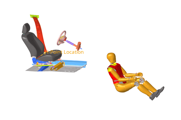 また、LS-DYNAダミーモデルは、NHTSAウェブサイトで公開されている、THOR-Mod Kit/Metric crash test dummy with SD3 shoulderを使用します。