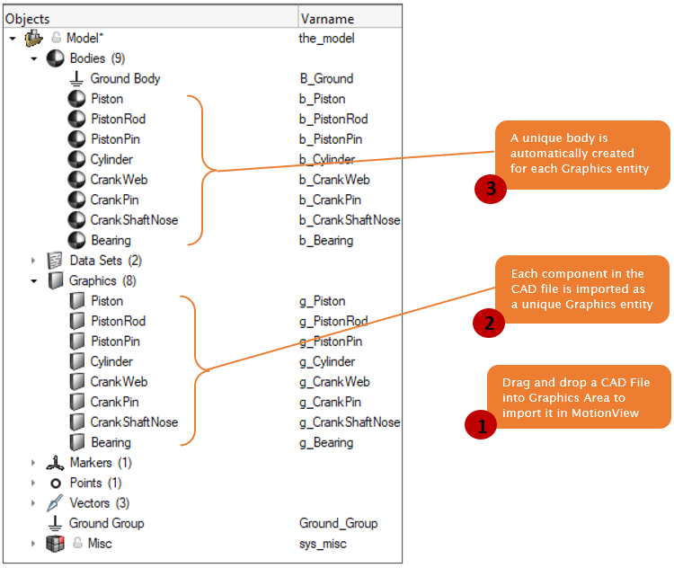 このステップでは、MotionViewでCAD形状ファイルをインポートする方法を学習します。