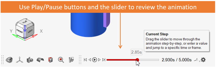 Play/Pauseボタンを使用します。スライダーをドラッグして特定のアニメーションタイムフレームを確認することもできます。