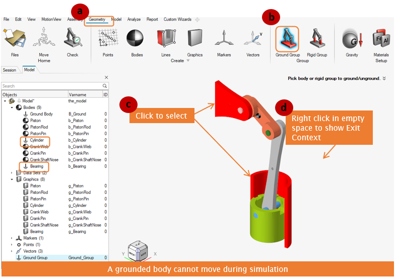 注:- 複数のボディを接地または接地解除する場合は、Groundコンテキストを使用すると便利です。