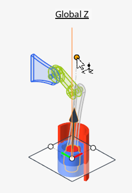 PistonをBody 1、CylinderをBody 2とし、Pistonの外側サーフェス中心をジョイントのOriginとする円筒ジョイントを作成します。ジョイントの方向としてGlobal Zを選択します。