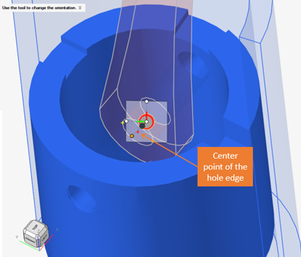 をPointに変更します。下図のようにPistonRod穴のエッジ中心点を使用します。新しいポイント