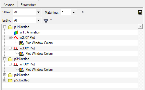 デフォルトでは新規セッションを作成する際、Parametersブラウザは、リストされている様々な属性について特定のパラメータを表示します。図 1. HyperGraphウィンドウパラメータを表示したParametersブラウザ