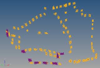 - このモードが有効な場合、要素表示設定モードに代わり、Connectorブラウザが要素の可視化モードの制御を引き継ぎます。要素は、有効なコネクターリンクビューに応じて、コンポーネントごと、プロパティごと、またはパートごとに色分けされます。