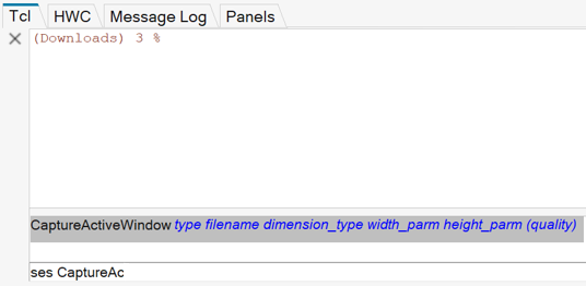 コマンドを実行すると、コマンド行が空になり、Tcl Consoleにコマンドが表示されます。
