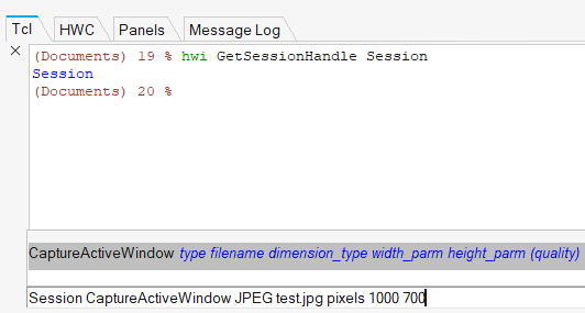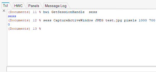 コマンド名を選択し、パラメータを入力してEnterを押すと、評価を行うことができます。以下は、CaptureActiveWindowの例です。図 10.