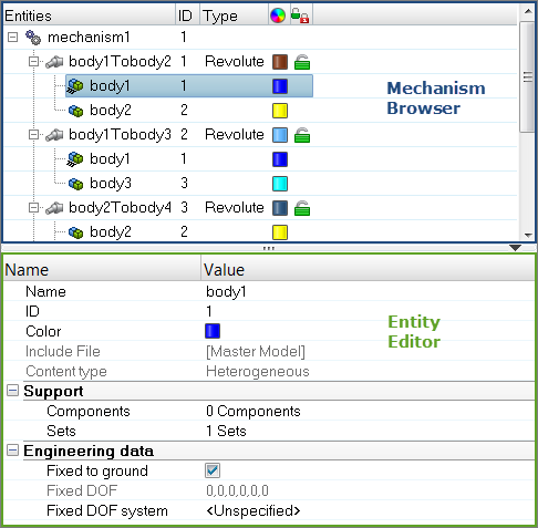 )は、FEパートまたはFE節点で構成した運動アセンブリであり、エンティティエディターで選択できます。ボディを作成するには、Mechanismを右クリックして、コンテキストメニューからを選択します。 - ジョイント(