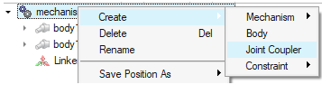ジョイントカップリングを作成するには、Mechanismを右クリックして、コンテキストメニューからを選択します。