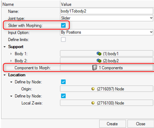 スライダージョイントを作成するときは、選択したボディの動きに連動して自動的にモーフィングされる追加のコンポーネントを選択できます。