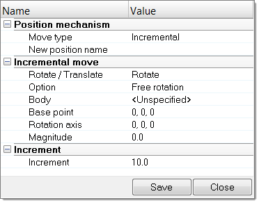 - /POSITIONでは、保存されている位置につき、次の各属性を使用して、メカニズムのアセンブリの位置情報を定義します。