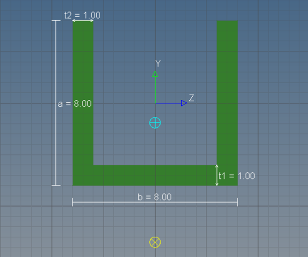 一般的な断面は、本質的な形状を持たないため、灰色のボックスだけが表示されます。中心およびせん断中心の位置が更新されます。図 4.