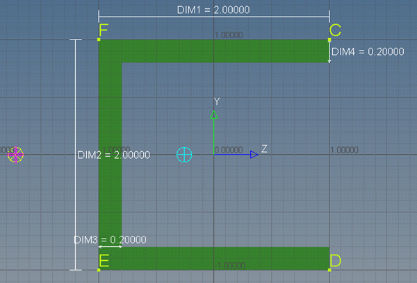 シェルの断面の場合、各パートは断面の頂点を示す点を結んだ線で描画されます。図 2.