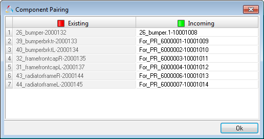 Component Pairingダイアログでコンポーネントを手動で置き換える場合は、コンポーネントのペアリングを修正して、OKをクリックします。