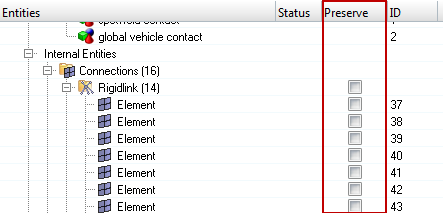 パートの置換後も削除されないように内部エンティティを保持するには、Preserveカラムのチェックボックスを選択します。