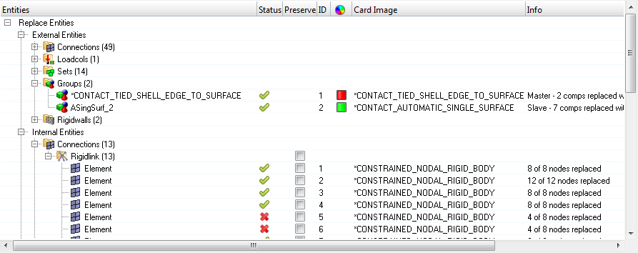 LS-DYNAでは、1つのパートを置換する場合、Hexa NuggetとMAT 196の接続が自動的に検出され、置換中にコネクターに有限要素に吸収されます。
