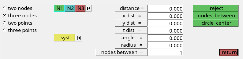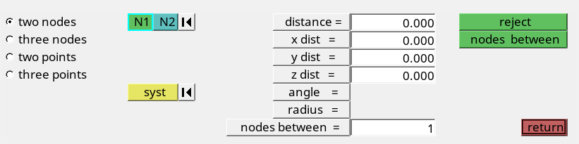 また一部のパネルでは、エンティティセレクター内のエンティティがクリアされず、同じエンティティを使って操作を繰り返すことができます。そのようなパネルでは、エンティティコレクターが空に戻されない限り、マウスの中央ボタンは選択された機能の実行を繰り返します。例えば、TranslateまたはRotateパネルでは、要素 / 節点 / コンポーネントおよび移動の方向と距離を選択し、マウスの中央ボタンを再度クリックすると、translate +またはrotate +機能が繰り返され、同じ節点が再び平行移動 / 回転されます。