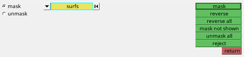 ラピッドメニュー機能は、各パネルでそれぞれ予め決定されています。複数の実行ボタンを有するパネルでは、ラピッドメニューは最も頻繁に使用される機能に割り当てられています。また、ラピッドメニュー機能は、パネルで変化する場合もあります。例えば、Lines パネルに入った段階では、returnがラピッドメニューに割り当てられています。しかし、ラインを作成するために節点をピックすると、createがラピッドメニュー機能となります。ほとんどのパネルでは、アクティブなエンティティセレクター(水色で囲まれた黄色のコレクター)が空である場合、マウスの中央ボタンをクリックすると、そのパネルは終了します。