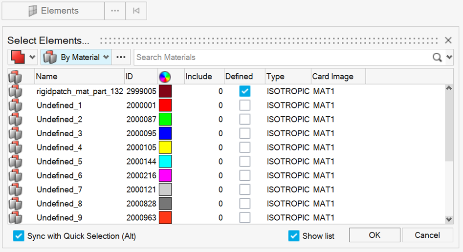 - 選択したインクルードに属する要素、荷重、グループなどのFEエンティティを選択します。注: モデルブラウザを介して作成されたインクルードは、それらをサポートするソルバーに対してのみ有効です。