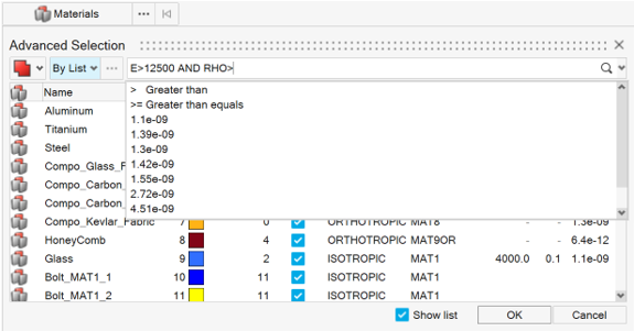 次のいずれかの方法でAdvanced Selectionダイアログを開きます。