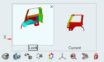 ビューのロックを解除すると、すべての表示操作がグローバルレベルで実行されます。たとえば、複数のコンポーネントを分離して操作した後にShow Allを実行すると、モデル全体がビューに戻ります。ビューをロックすると、範囲がグローバルからローカルに変わります。これは、すべての表示操作が、ロックされているときのモデルの表示状態を基準とするようになったことを意味します。ビューをロックすると、サブモデルの操作が簡単になり、ビューをより正確に制御できます。