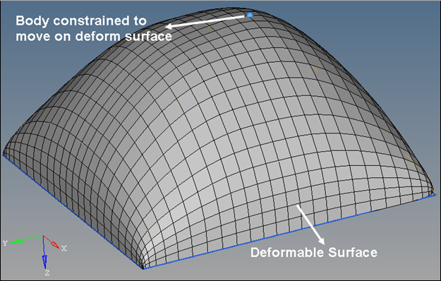 - Constraint_PTdSFの定義に変形可能サーフェスを使用します。これにより、ボディ上のポイントが変形可能サーフェスに沿ってスライドするように拘束されます。