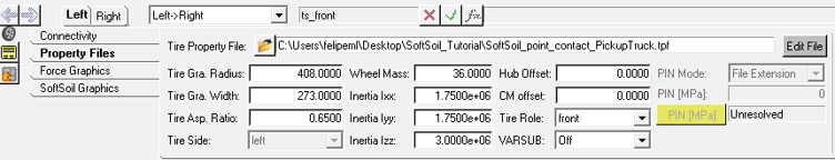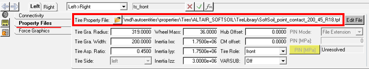- Property Filesで、Tire Property Fileをクリックし、ステップ4で保存した修正済みのタイヤファイルを選択します。