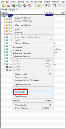ブラウザでModelを右クリックして、コンテキストメニューからAdd Eventsを選択します。