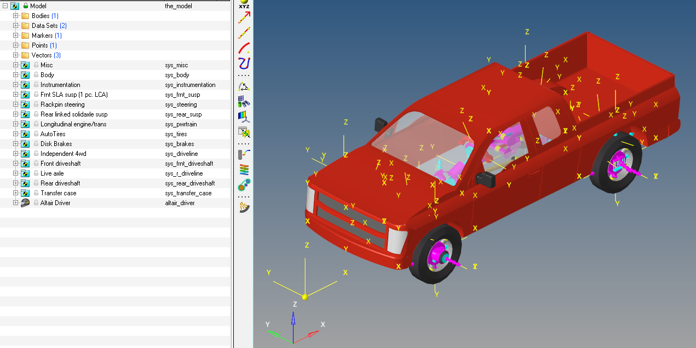 HyperViewセッションがピックアップトラックモデルの結果を伴って開きます。