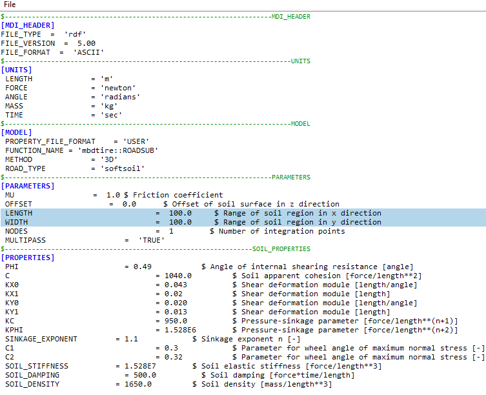 注: LengthパラメータとWidthパラメータによって、軟質土壌路面の限界が定義されます。 - Fileをクリックし、変更したプロパティファイルを自分の<作業ディレクトリ>に保存します。