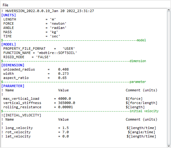 Edit Fileボタンをクリックして、SoftSoil Tireパラメータを変更します。