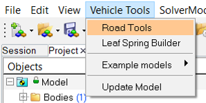 Vehicle Toolsメニューで、Road Toolsを選択します。