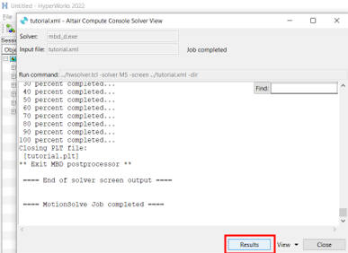 シミュレーションが完了したら、Resultsをクリックし、HyperViewでアニメーションを確認します。