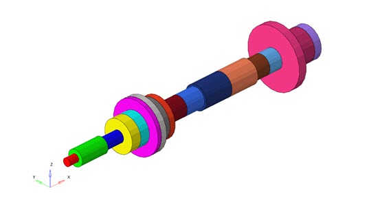 these systems. Here the critical speed of a rotor bearing system using OptiStruct is verified. 1図 1. 1D Rotor Model 図 2. 3D Representation of Beams