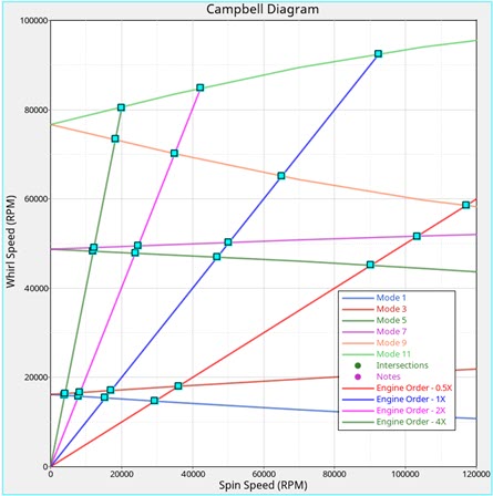 Mode 図 4. Campbell Diagram (For Engine Orders 0.5, 1, 2 and 4)