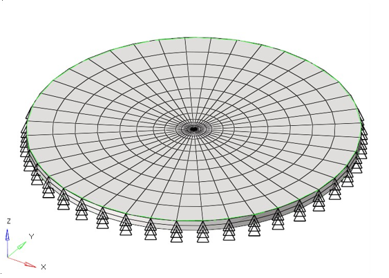The 1, 2, and 3 degrees of freedom of the grids at the circumference are constrained,