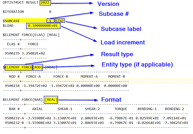 - 旧来と既存のOPTIフォーマットは現在でも使用できます。新しいフォーマットは、特定の解析タイプと出力要求向けとした追加フォーマットです。OPTIフォーマットの詳細については、リファレンスガイドのOUTPUT, OPTIをご参照ください。