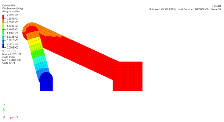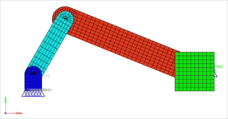 この例題では、回転ジョイントでのJOINTGをMOTNJGの使用を取り上げます。JOINTGエントリは、回転、球、ユニバーサル、カルダンといった各種ジョイントの定義に使用することができます。これらのジョイント上の運動は、MOTNJGエントリを使って付与できます。