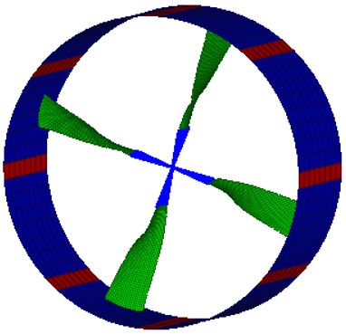 RD-E:5501 ファンブレードの回転の初期設定 は、遠心力場を生成して初期および強制速度を回転するファンブレードに付与し、定常状態の回転条件を正しく初期化するために、Radiossの/LOAD/CENTRIをどのように使用するかを示しています。