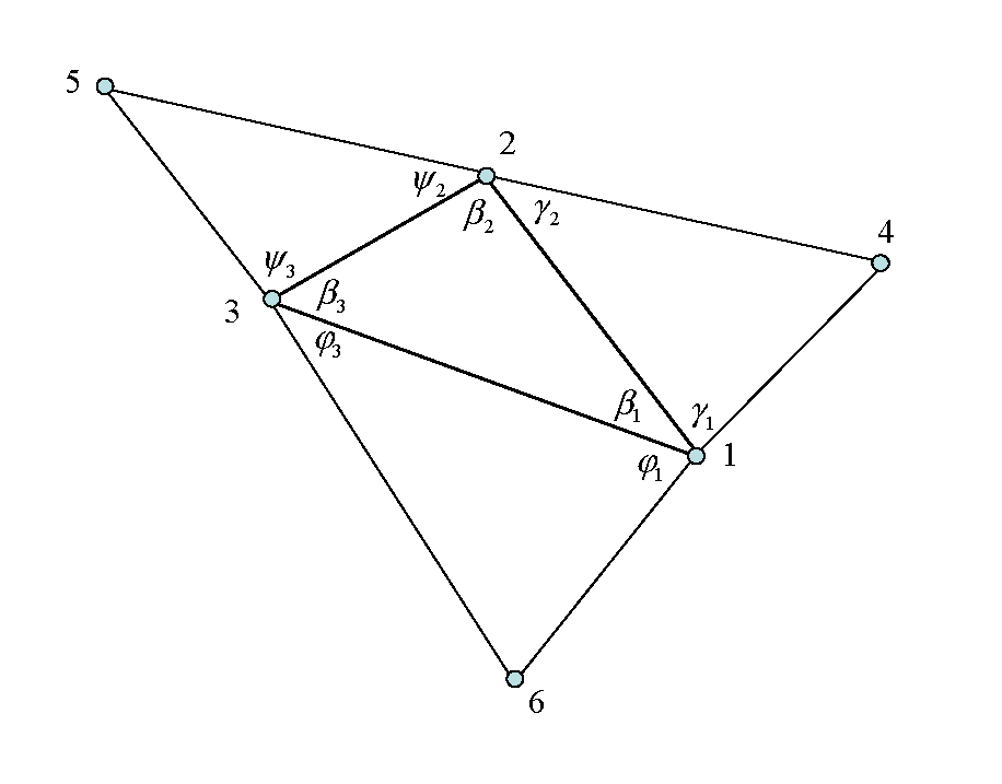 Where, , , and are respectively the heights of the triangles (1,2,3), (1,4,2), (2,5,3)