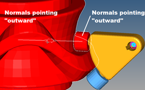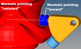 Figure 1. An Example of Normals Defined "Inward" (blue) vs "Outward" (red)