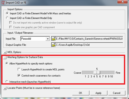 Figure 6. MotionView Allows You to Control the Mesh Coarseness while Importing Geometries