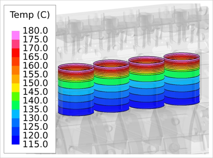 - Temperatures and HTC in the cylinders that can result from a combustion analysis