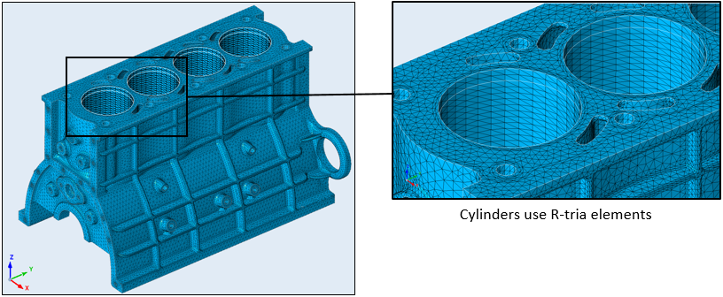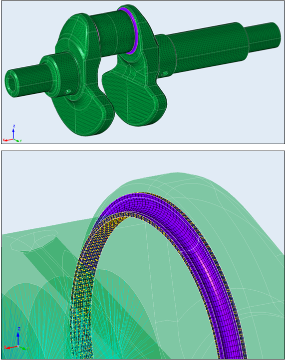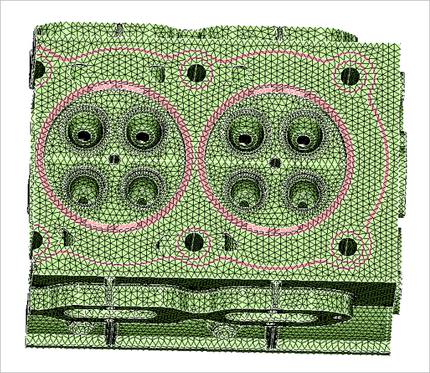 In Figure 6, the gasket mesh have been imprinted onto the mesh of the cylinder head with SimLab to have coincident mesh between these two parts. This has been done to have a better contact modeling in this area.