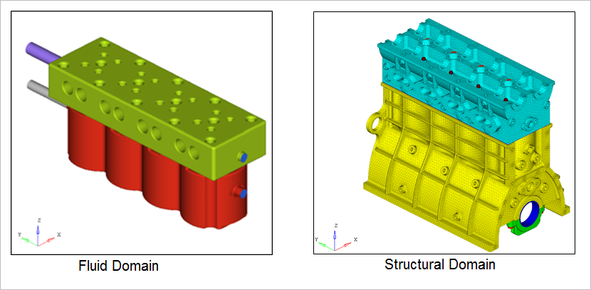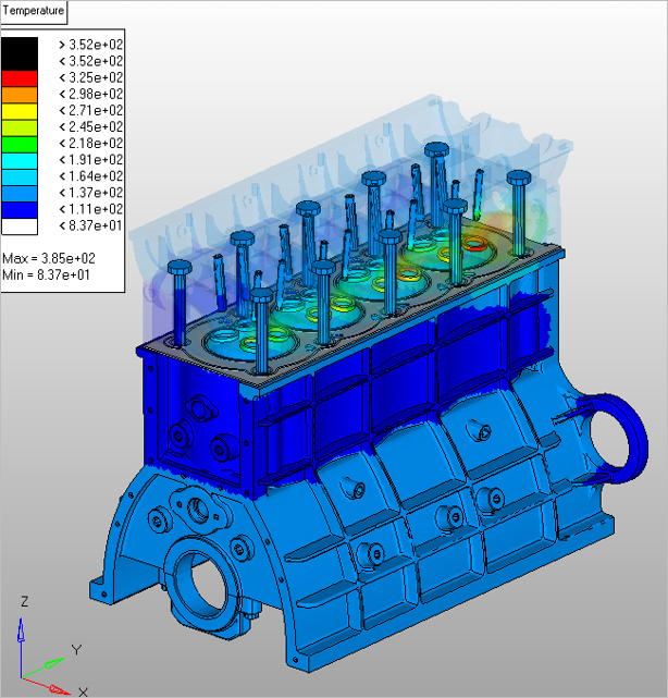 Thermal Fluid Structure Interaction Analysis on the engine block made of the cylinder head, valve guides, valve seats, valves, cylinder block, bearing caps and bedplate.