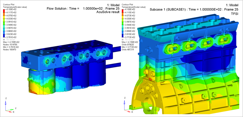 Evaluate temperatures in the engine block by considering the coupling effect with the fluid domain. These temperatures could then be used as inputs during a subsequent durability analysis.