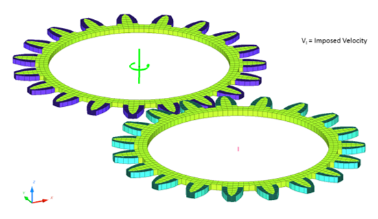 The purpose of this study is to demonstrate the use of quadratic interface contact using two gears in contact with identical pitch diameter and straight teeth. Two different contact interfaces are compared.