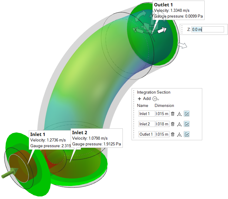将流体域的一段区域的平均速度/流速可视化。![]() |